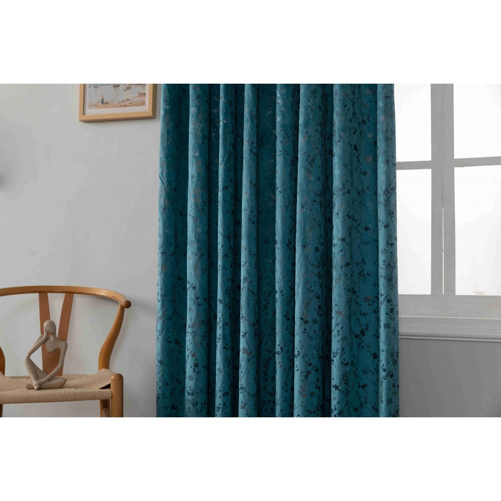 Κουρτίνα Βελούδινη Με Τρέσα (270*275) Πετρόλ -6032-5